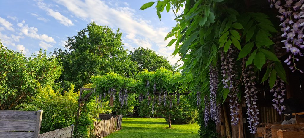 Le jardin méditerranéen est aussi très adapté aux changements climatiques, grâce à ses espèces résistantes à la sécheresse et au vent. Il invite au farniente et à la convivialité, avec des espaces de repas ou de repos aménagés à l’ombre des arbres.
